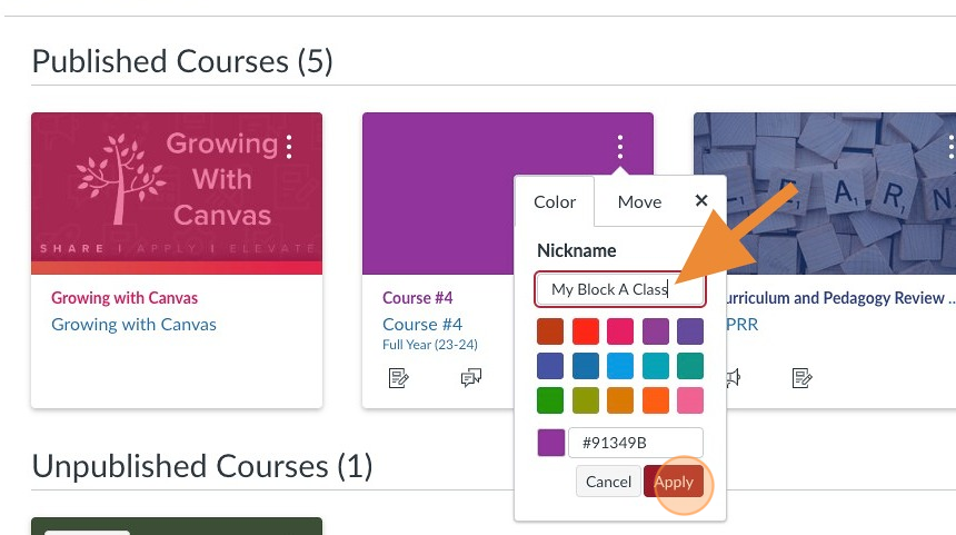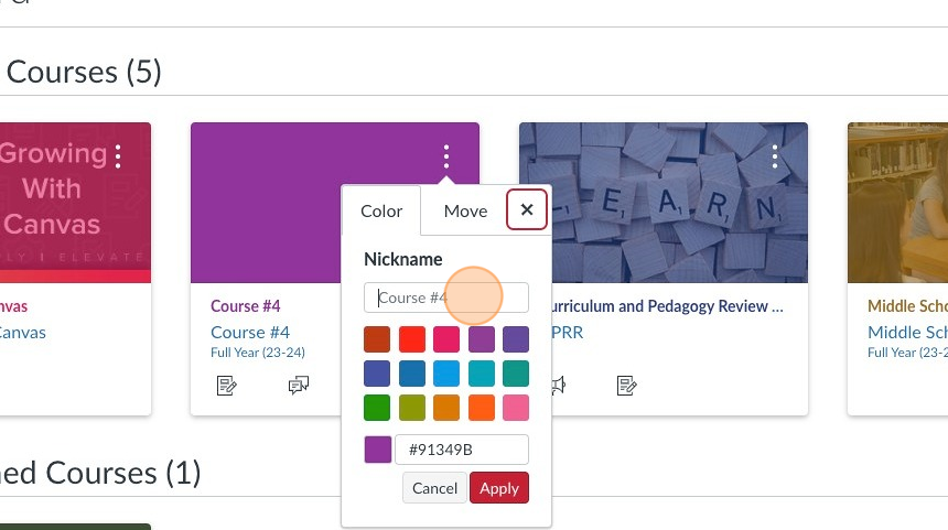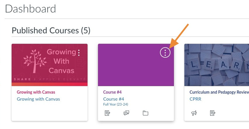 2. On the course you want to rename on your dashboard, click the 3 dots associated with the course.