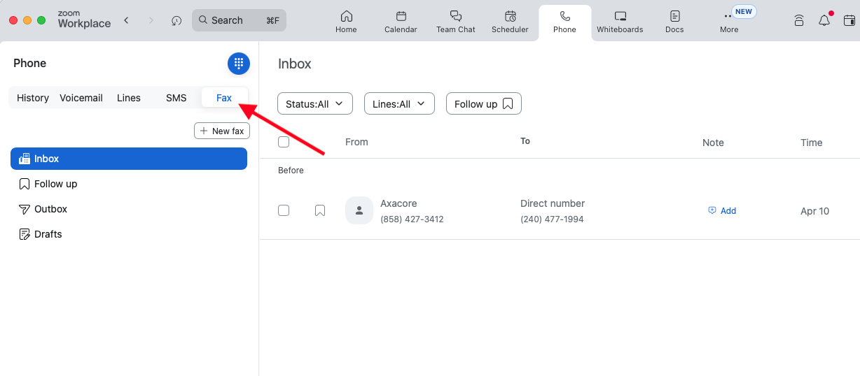 - Access Online Fax on the Zoom desktop app.