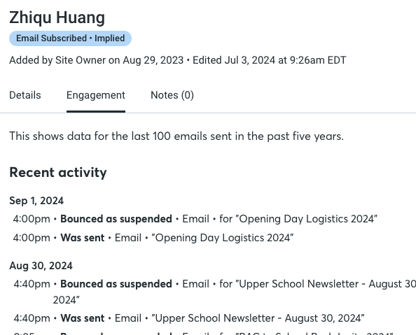 If somebody isn't getting emails it isn't readily apparent when you look at the record. If you click Engagement you can see if they are getting emails: