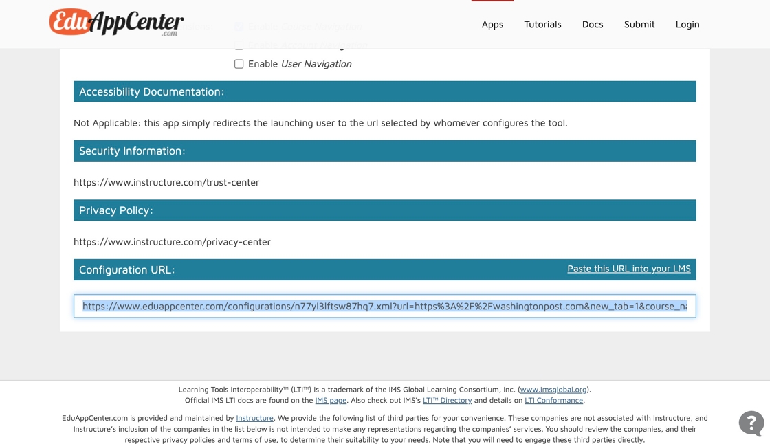 Go back to your Course - Settings - Apps and click "View App Configuration".