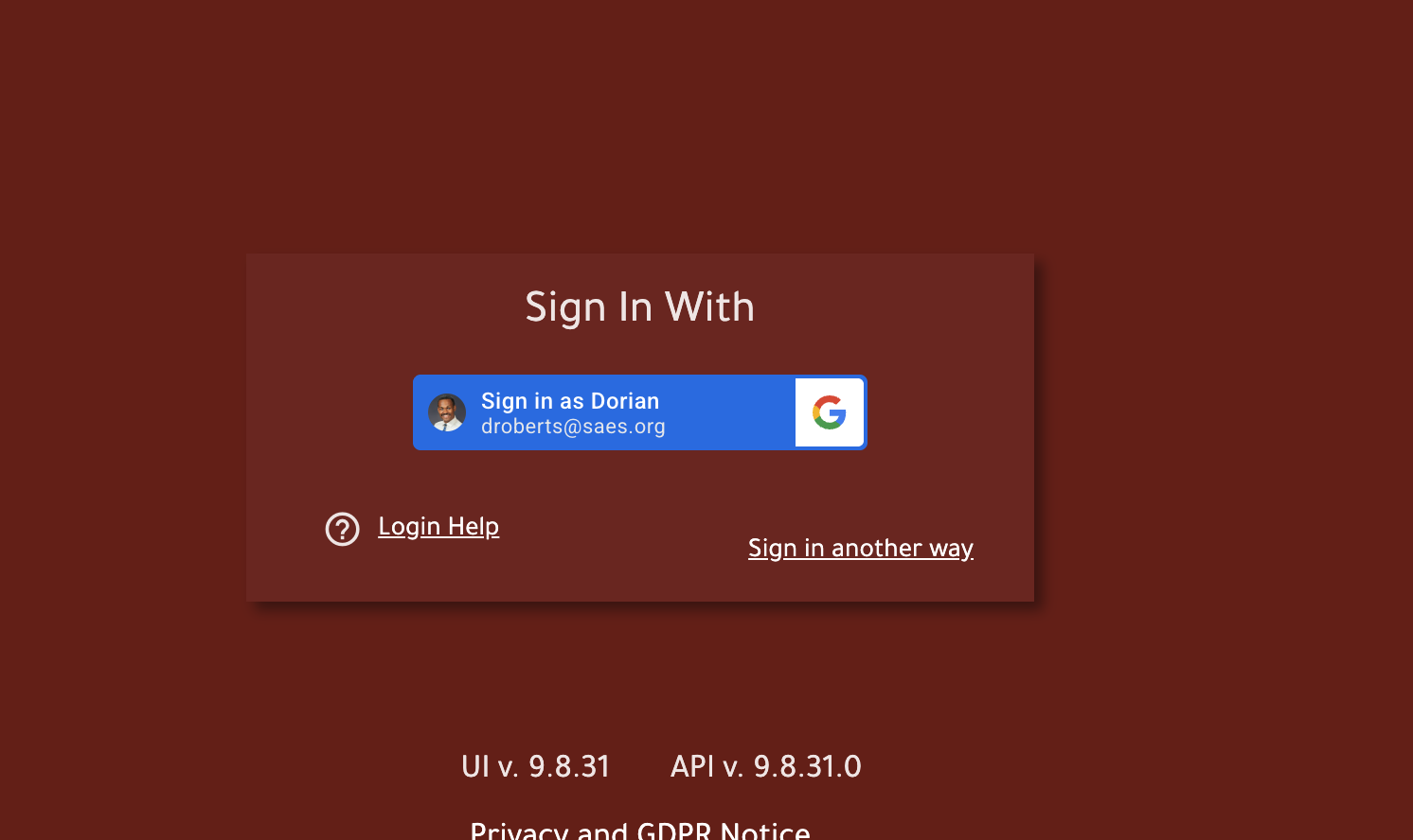 Click sign in with Google. It should look like the picture below but if it prompts to enter email and password please enter your full @saes email credentials and password.