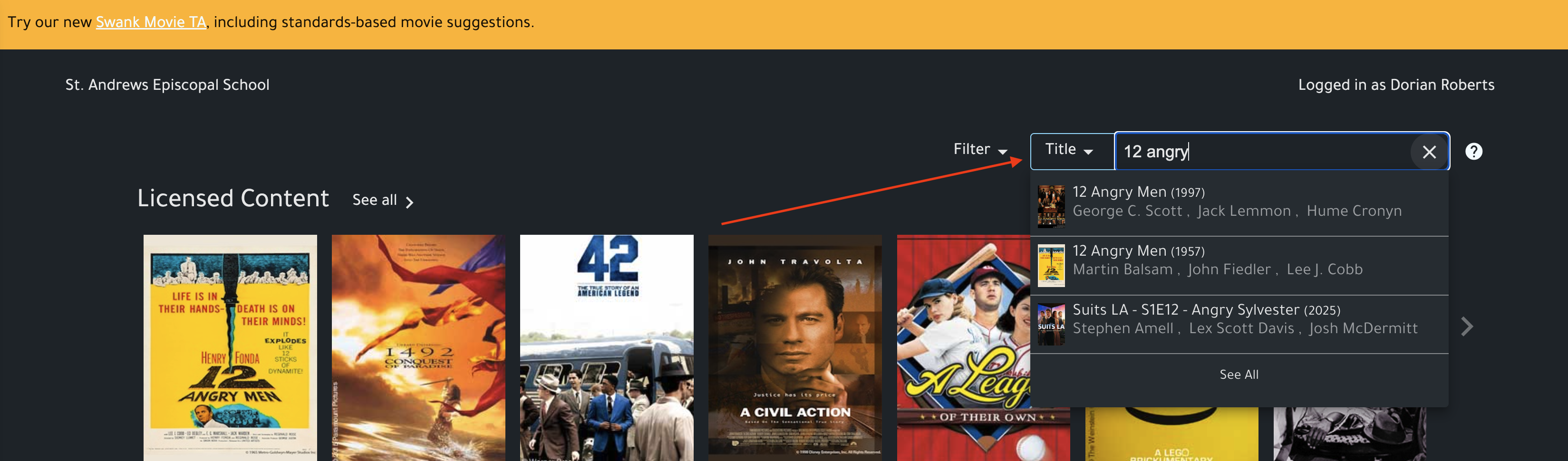 Once signed in you can use the Search bar to locate the film you wish to watch