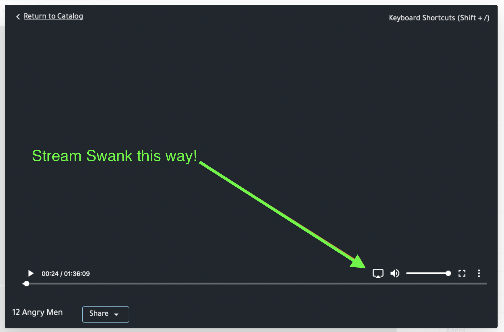 Click the AirPlay icon inside the Swank video player.