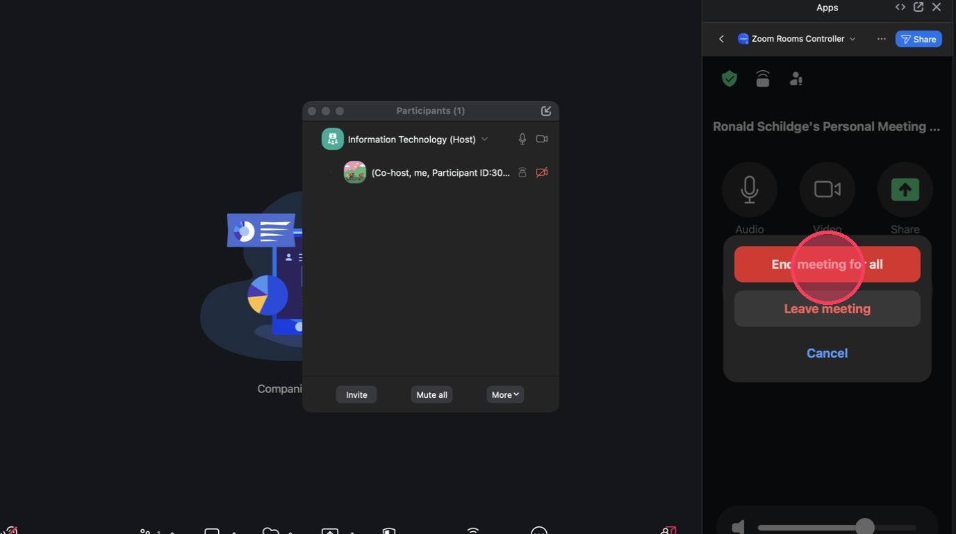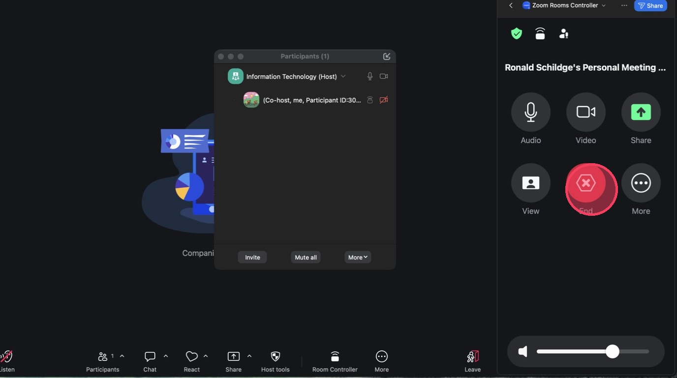 10. Click "End" to close the meeting