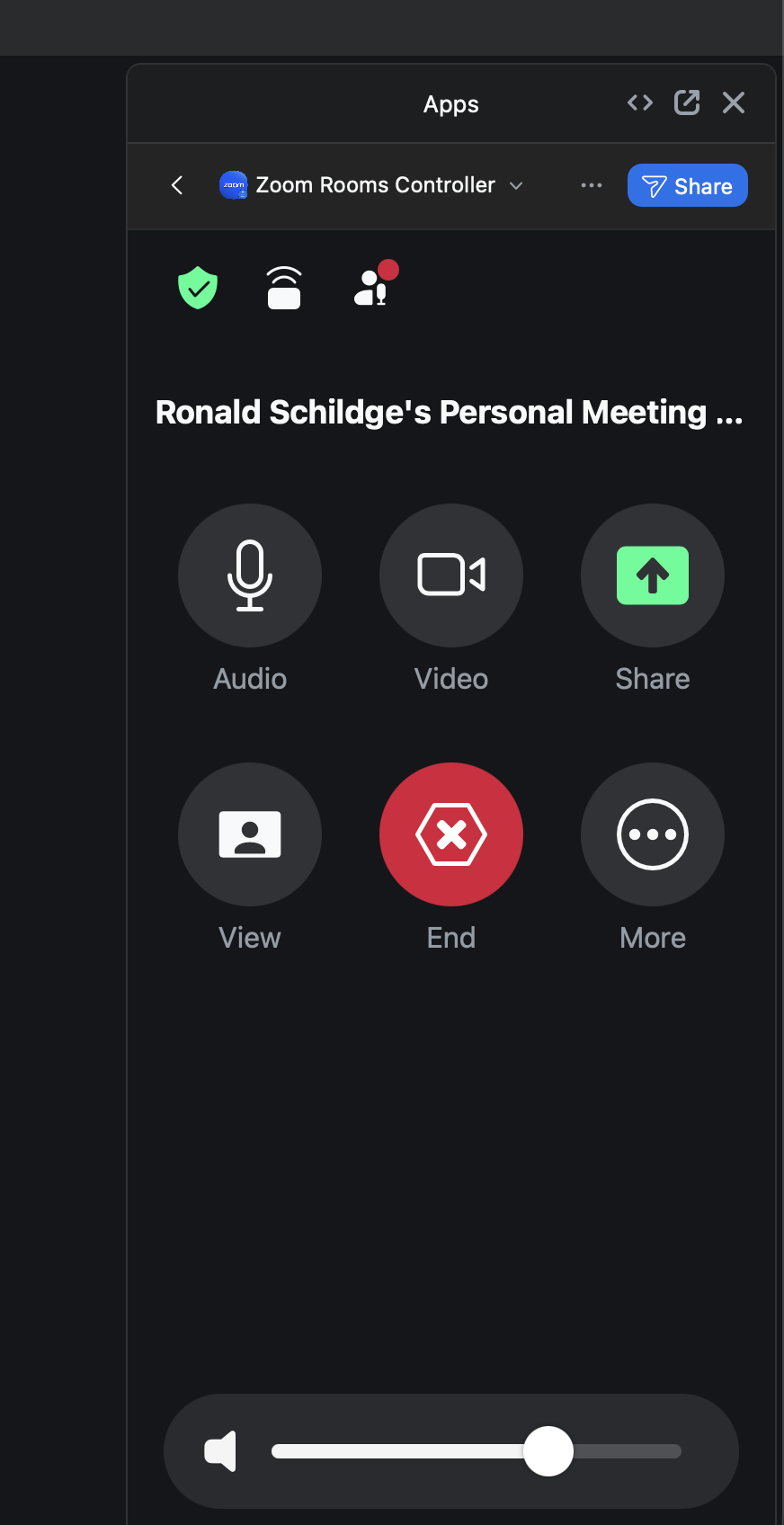 If you would like to control a Zoom Room without the controller device, you can use your computer instead. You will have all the same abilities including turning on and off the camera and microphone, adjusting the display settings, and sharing your screen. See this video or either of the two explanations below to "Create a Meeting in a Zoom Room" or "Transfer a Meeting to a Zoom Room".